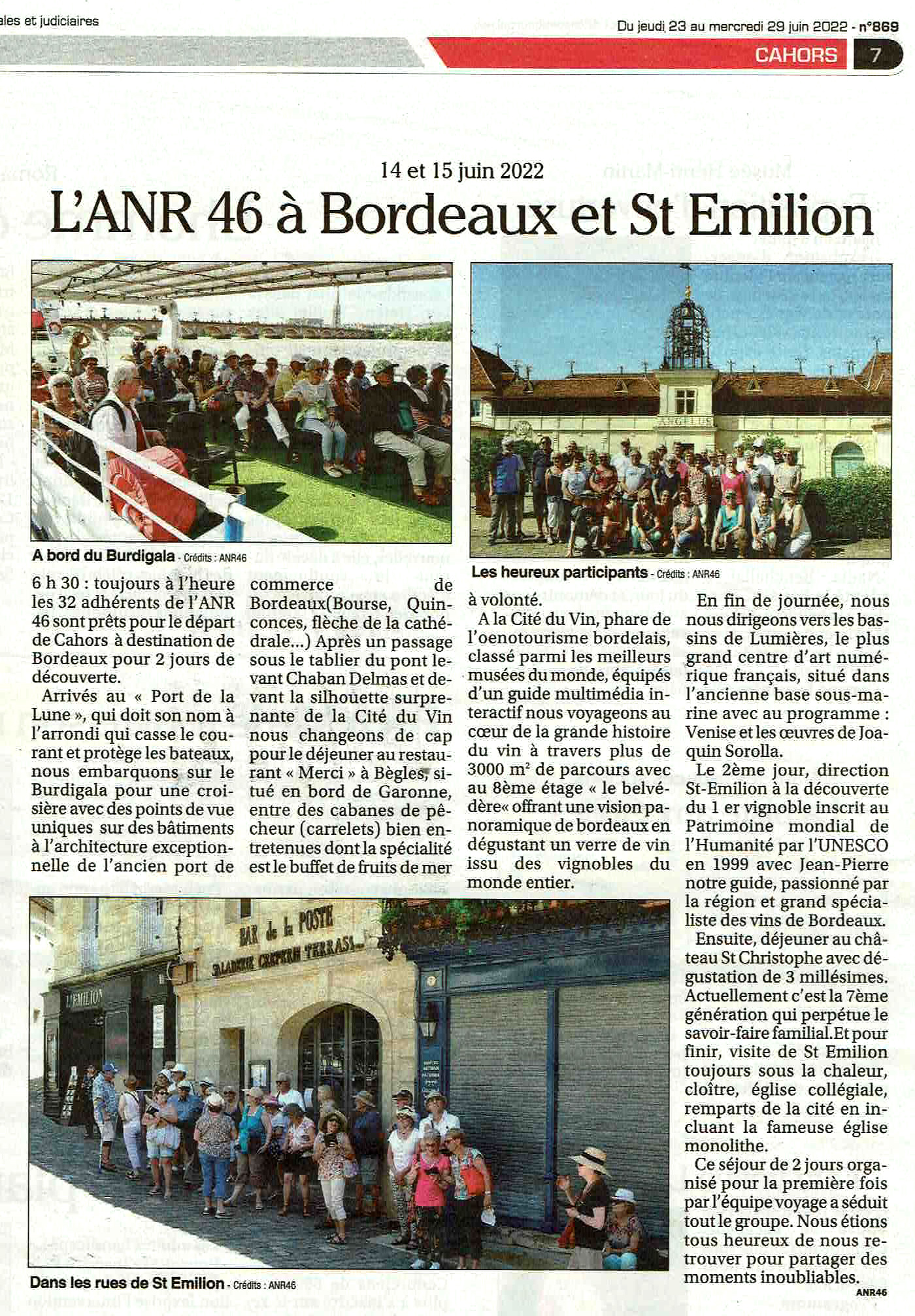 Articles publiés, à l’occasion de la Sortie à Bordeaux & Saint-Emilion, les 14 & 15 juin 2022 dans :