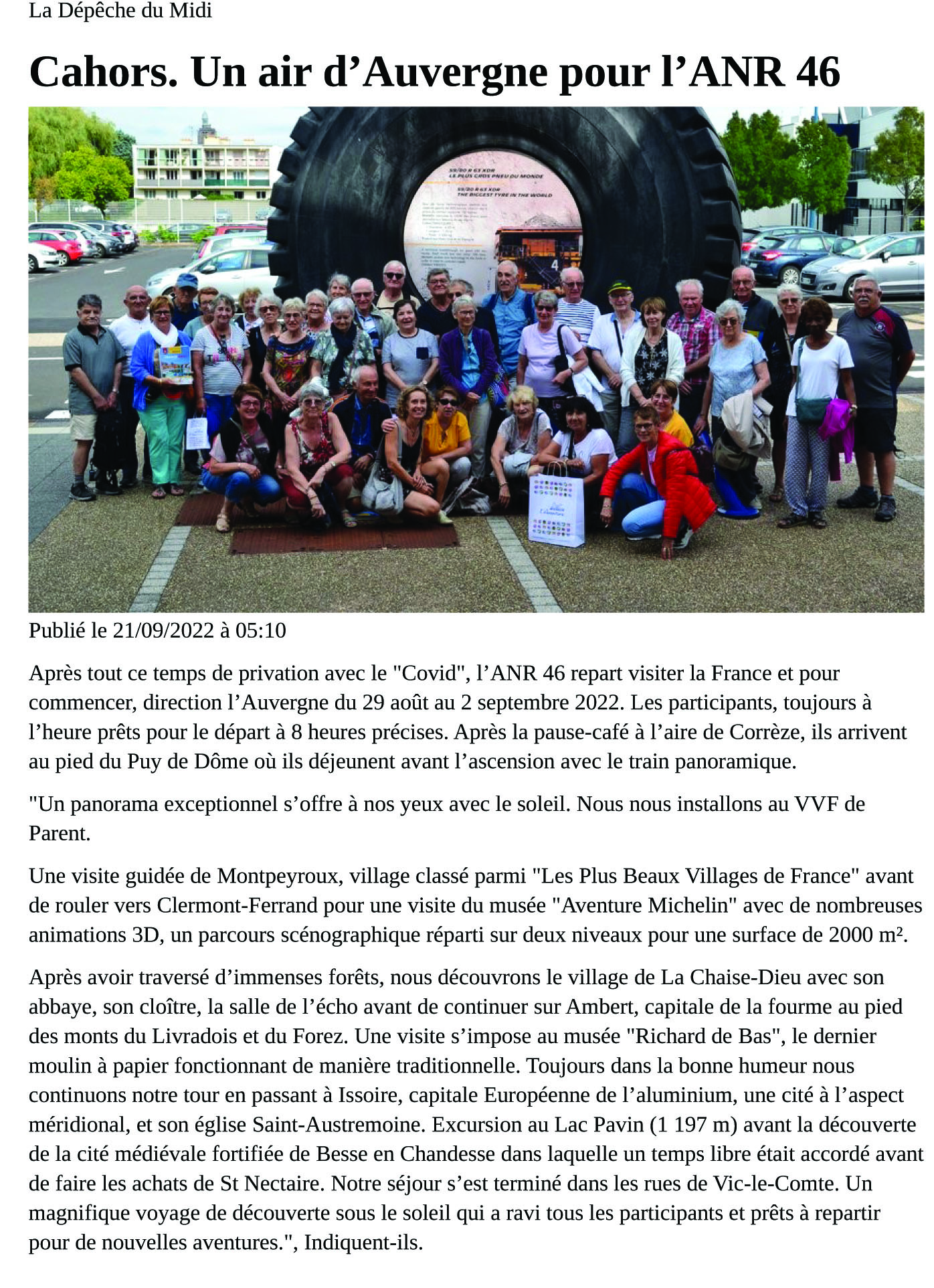 Articles publiés, à l’occasion du séjour en Auvergne, du 29/08 au 02/09/2022 dans :